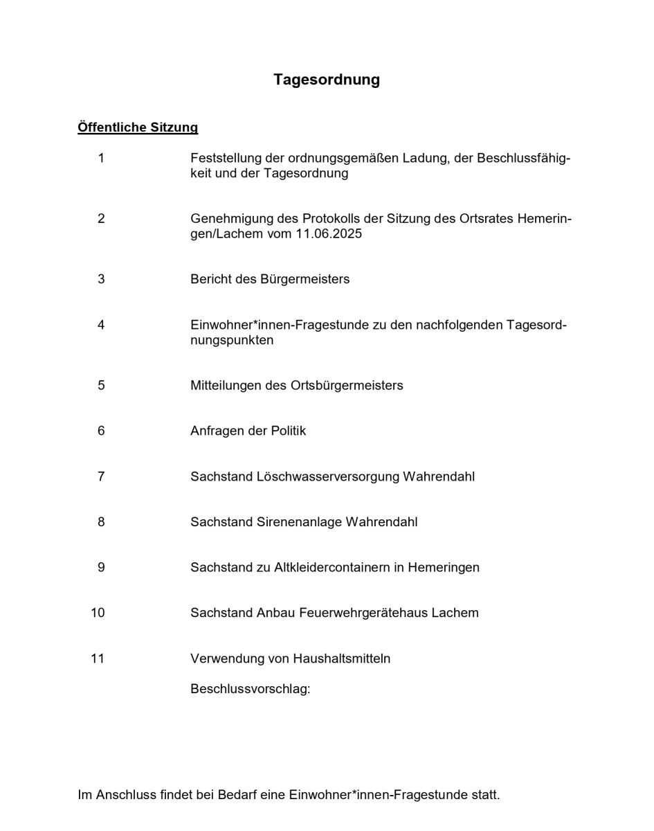 Des Weiteren gab es aus dem Rathaus positive Mitteilungen: Das vom Ortsrat geforderte Buswartehäuschen in Lachem an der Landesstr. Richtung Hemeringen ist ins Förderprogramm der Landes gekommen und wird gebaut. Die Arbeiten beginnen im Spätherbst.